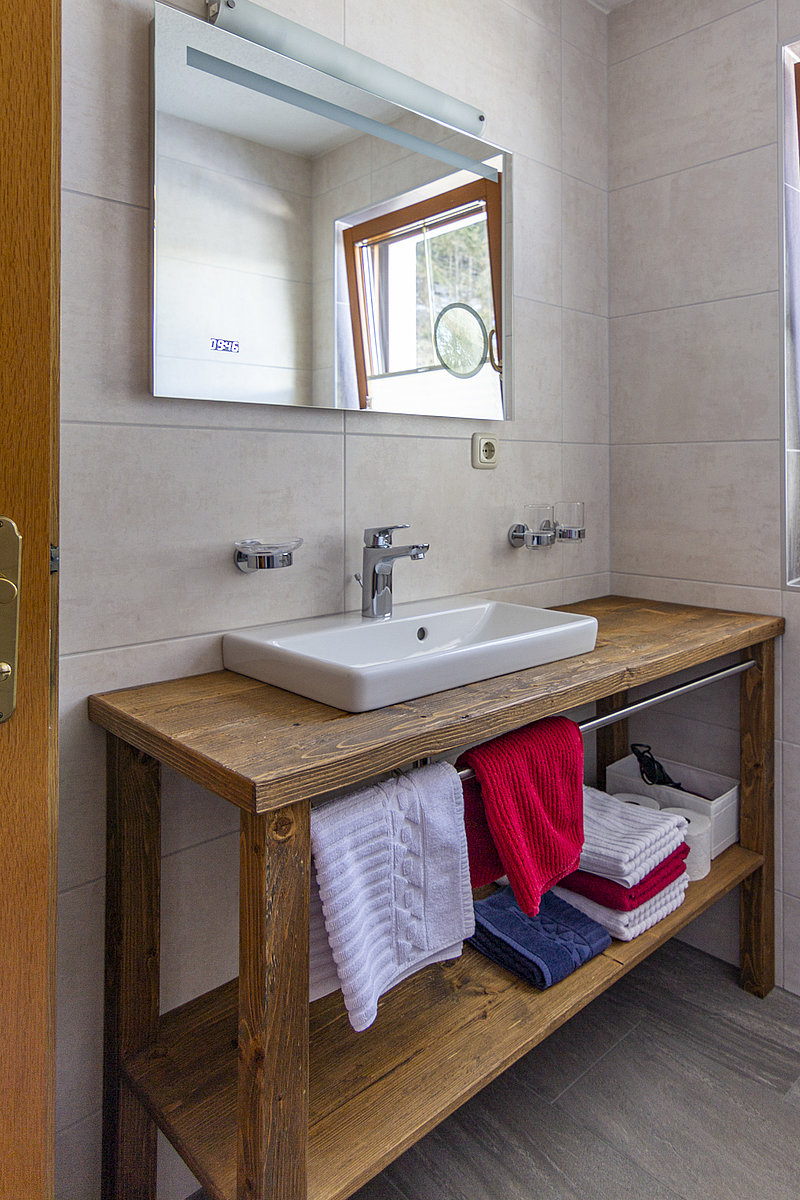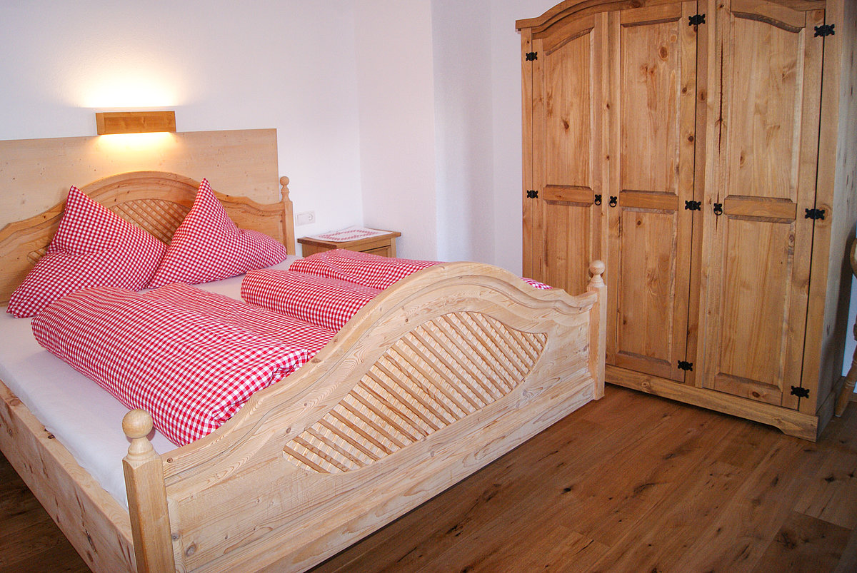 Durch eine Verbindungstür gelangen Sie in das Schlafzimmer, welches ebenfalls mit rustikalen Möbeln ausgestattet ist.