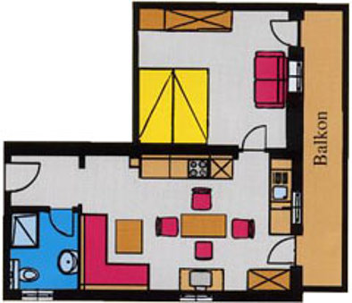 Diese Wohnung besteht aus einer Wohn-Küche mit E-Herd (Backofen).